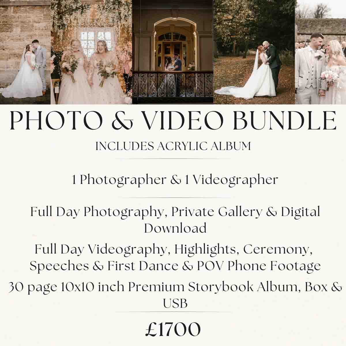 Includes Full Day Photography, Full Day Videography and Storybook Album