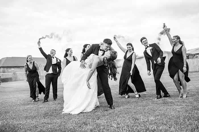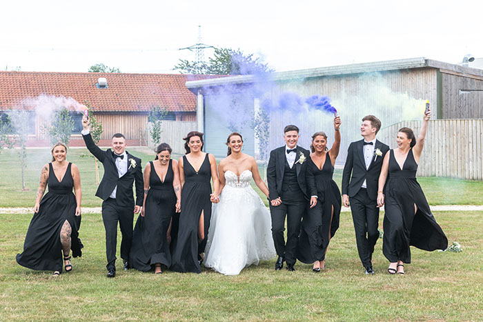 After the wedding breakfast and speeches there was time for some smoke bombs with the bridal party before the evening reception that had lots of great dance moves!